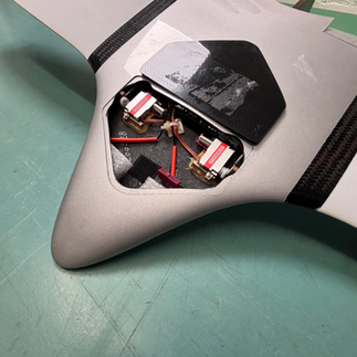 Das Modell hat Profile, die von Peter Wick (Gizmo, Snap etc.) gerechnet wurden, eine Glasnase (Empfang) und ist ansonsten in Voll-CFK aufgebaut worden.